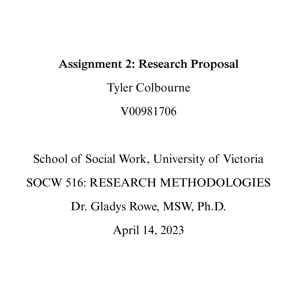 April 14, 2022, by Tyler Colbourne: Assignment 2: Research Proposal. This paper outlines my commitment to decolonial approaches to qualitative research, with a proposed qualitative participatory-action research project involving 2SLGBTQIA+ trainers in suicide prevention. The paper addresses the deficits and gaps in knowledge around the efficacy of dominant suicide prevention training modalities, specifically for people in the queer community, who face higher rates and risks of suicidality.