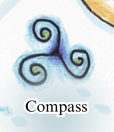 The Cartography of Learning has a compass at the bottom of the image in another visual representation of the ancient Celtic symbol the Triskelion. This compass, unlike a traditional compass, offers not directions but reflections of many directions and approaches I can take while navigating my learning journey. It repeats the fractal spirals found in the waterways on the map. These fractal spirals reflect my eclectic approach to social work practice where I often look to the blending of many positions and perspectives. The Compass reinforces the interconnectedness and entanglement of all things and highlights the many ways to approach complex challenges in my practice.